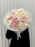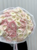 Ethereal beauty blooms in an abundant collection of cream and soft pink ranunculus that creates a dreamy, romantic masterpiece. Featuring ivory ranunculus with delicate pink gradient edges and pure white ranunculus, this generous arrangement celebrates the distinctive layered petals and natural elegance of these beloved blooms. Perfect for weddings, romantic occasions, or as a refined gift that conveys purity and grace.