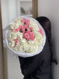 Every arrangement is carefully packed in a reinforced transport box with an aqua box (water pack) to keep your flowers fresh and secure during delivery. This premium packaging is included at no extra cost – because your flowers deserve to arrive as beautiful as they left our studio.