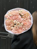 Every arrangement is carefully packed in a reinforced transport box with an aqua box (water pack) to keep your flowers fresh and secure during delivery. This premium packaging is included at no extra cost – because your flowers deserve to arrive as beautiful as they left our studio.