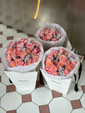 Every arrangement is carefully packed in a reinforced transport box with an aqua box (water pack) to keep your flowers fresh and secure during delivery. This premium packaging is included at no extra cost – because your flowers deserve to arrive as beautiful as they left our studio.